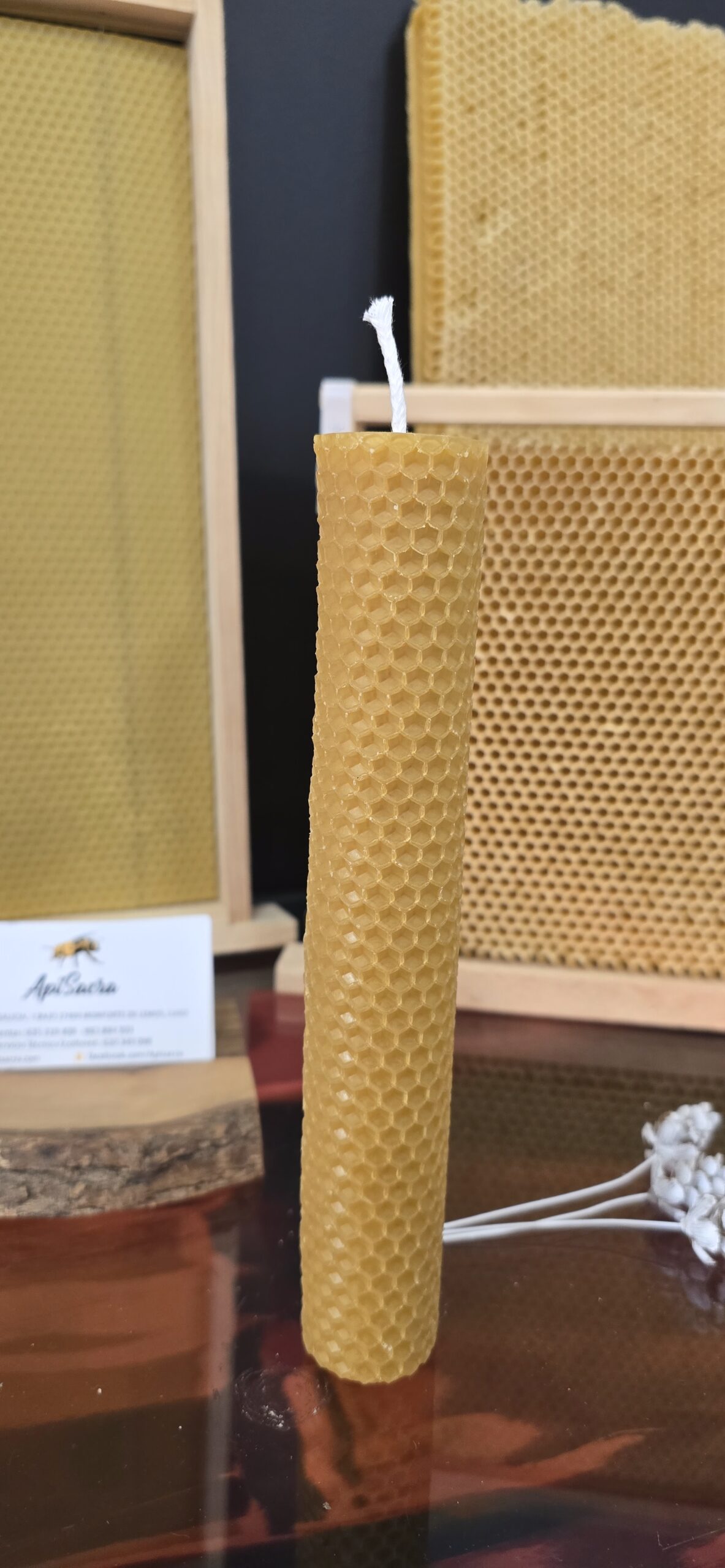 Vela enrollada a mano a partir de lámina natural de cera de abeja.